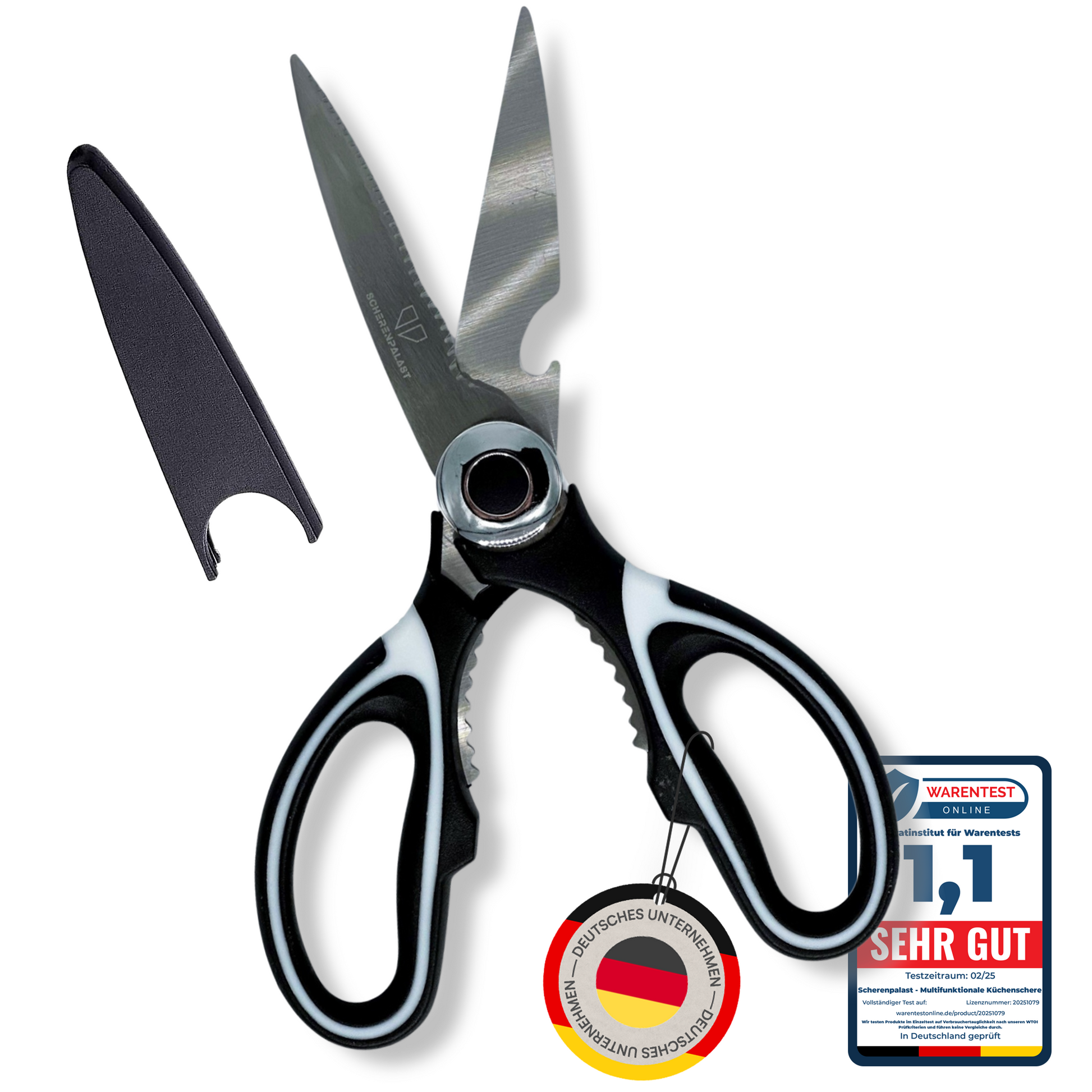 Küchenschere Edelstahl vom Scherenpalast®, Geflügelschere, Mehrzweck Haushaltsschere, Stoffschere, Schere mit Schutzhülle für Geflügel, Knochen, Fisch, Kräuter & Gemüse, Dosenschneider, Nussknacker