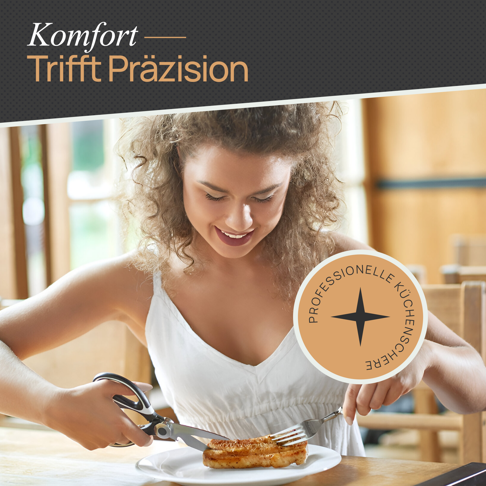 Mit der Scherenpalast® Küchenschere aus Edelstahl holen Sie sich Markenqualität in Ihre Küche – scharf, robust und langlebig.